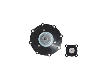 電磁脈沖閥是脈沖袋式除塵器清灰系統(tǒng)的噴吹氣路“開關(guān)”,閥體內(nèi)膜片其正常運(yùn)行的關(guān)鍵所在。脈沖閥膜片包含一個(gè)來(lái)封堵壓縮空氣管道或者說(shuō)封堵閥的出氣口的鉚頭,放氣卸荷孔和四周有固定支撐用的螺栓孔。膜片將閥體分為前后兩個(gè)氣室,其后控的面積大于前控的面積,氣壓作用力大。